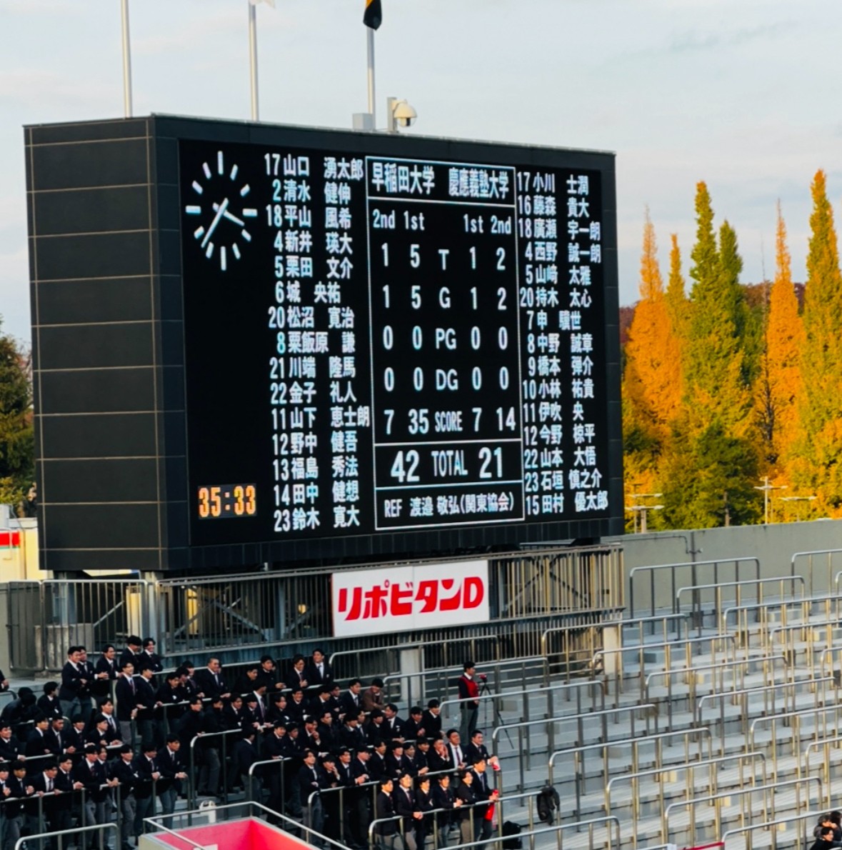 ラグビー慶早戦野球観戦
